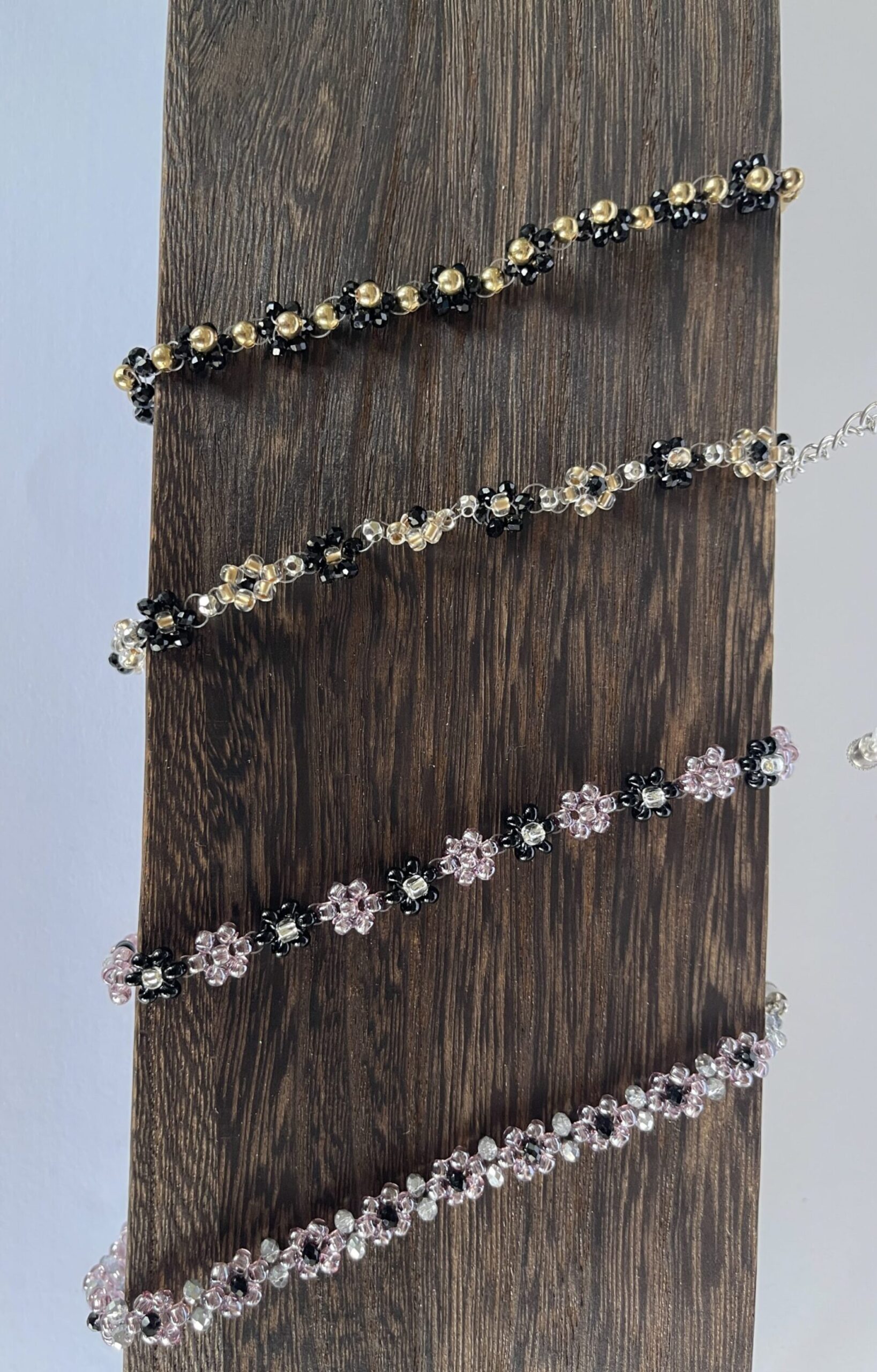 投稿日: 2025-04-06 投稿者: 月夜成フラワーブレスレット 黒とピンクのビーズで お花のブレスレットを作りました。 ビーズの大きさは小さめで 黒とピンクのお花で 春をイメージしてみました🌸 Instagram